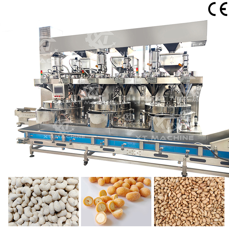पूर्ण स्वचालित बड़ी क्षमता वाली तीन-स्टेशन कोटिंग मशीन, मूंगफली कोटिंग मशीन, नट्स और बीन्स कोटिंग के लिए पपरिका के साथ
