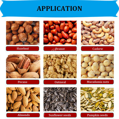 304 खाद्य ग्रेड स्टेनलेस स्टील के निर्माण के साथ कारखाने के उपयोग के लिए डिज़ाइन की गई अखरोट रोस्टिंग मशीन।