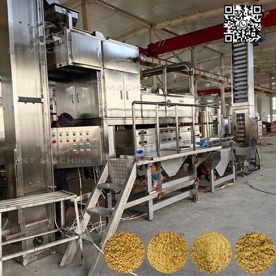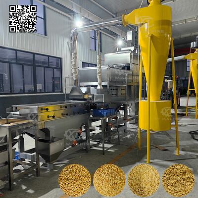 इस उन्नत कटाई प्रणाली में दो-चरणीय प्रक्रिया है। जब विभाजित ब्लैंच की हुई मूंगफली को ऊर्ध्वाधर कन्वेयर के माध्यम से कटर में डाला जाता है, तो सामग्री को पहले प्रारंभिक कटाई डिवाइस द्वारा मोटे दाने में काटा जाता है, फिर मिक्सिंग ग्रेन्युलेटर बनने के लिए दूसरे चरण की कटाई में प्रवाहित होता है। एकीकृत वाइब्रेटिंग सीफ्टर के साथ, कटे हुए पदार्थ को 4 समान विशिष्टताओं में छांटा जाता है। आमतौर पर, कटे हुए आकार को 5-8 मेश, 8-10 मेश, 10-12 मेश में विभाजित किया जाता है, जिसमें 12 मेश से नीचे की सामग्री पाउडर बनावट प्राप्त करती है।