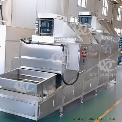 कूलिंग कन्वेयर बेल्ट को सटीक गति नियंत्रण के लिए एक मोटर रिड्यूसर से सुसज्जित किया गया है। कन्वेयर के शीर्ष पर स्थापित एक उच्च दबाव वाला एयर फैन, ब्लैंच या फ्राइड मूंगफली से प्रभावी ढंग से नमी को हटाता है, जिससे इष्टतम उत्पाद गुणवत्ता सुनिश्चित होती है।