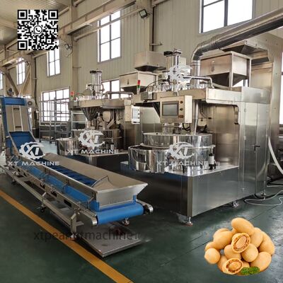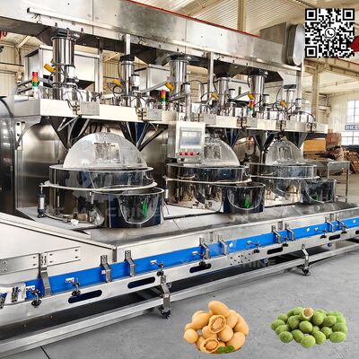 This automatic coating machine is specifically designed for coating products such as dough-coated peanuts, flavored coffees, nuts, sunflower seeds, and similar items with precise digital control.
